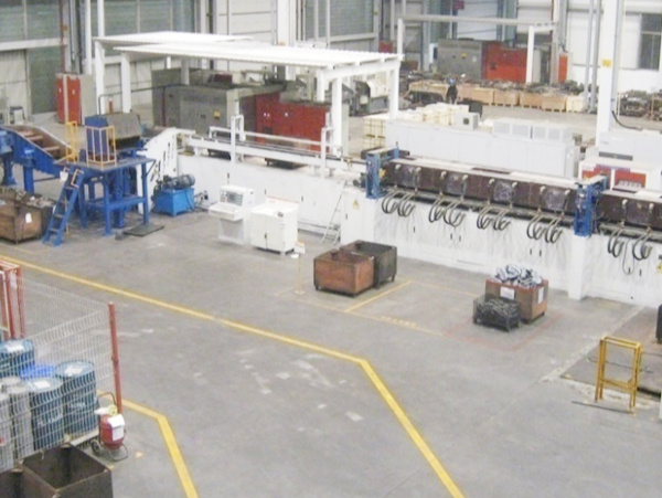 100MN配套的工(gōng)頻感應加熱(rè)爐采用機(jī)械手上下料,托盤無摩擦傳輸,整個加熱(rè)傳輸過程無摩擦,是當時國(guó)内首家實現。